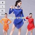 社交ダンスドレス ドレス ラテン フリンジ ミニ丈 長袖 チョーカー ワンピース 発表会 舞台服 チャチャチャ 練習用 ステージ