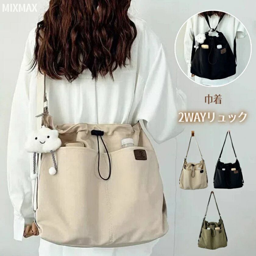 【12%OFF 12/11まで】【最短当日発送】2way リュック ショルダー 3wayバッグ レディース トートバッグ 斜めがけ ナイロン A4 大きめ 肩掛け ショルダーバッグ 巾着バッグ 斜めがけ 肩掛けバッグ キャンバス ポケット多い 多収納 整理 大人 大容量 外ポケット 縦長 通勤 通学