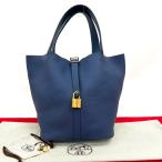 極 美品 袋付き C 刻印 HERMES エルメス ピコタンロック GM トリヨンクレマンス レザー ハンドバッグ トートバッグ ブルー 62402