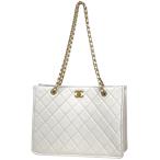 シャネル CHANEL ココマーク チェーン トートバッグ 肩掛け ショルダーバッグ マトラッセ トートバッグ レザー ホワイト レディース 中古