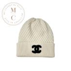 中古 シャネル ニットキャップ カシミヤ コットン ホワイト ブラック ニット帽 ココマーク アパレル レディース 女性