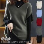 ニットベスト サマーニット レディース ニットトップス 秋 冬 秋冬 黒 ドルマンスリーブ ニット ベスト Vネック ゆったり 体型カバー OL 20代 30代 40代
