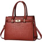 カバン レディース ハンドバッグ レディースバッグ ショルダーバッグ クロコダイル風 人気 大容量 2way 女性 可愛い (レッド)