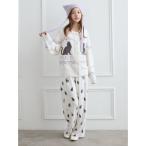 パジャマ ルームウェア パウダースリーピーロゴジャガードプルオーバー&ロングパンツセット レディース
