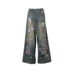 ジーンズ デニム デニムパンツ Kids Sticker Printed Wide Denim Pants レディース