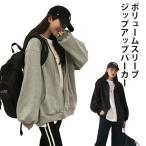 ジップアップパーカー ボリューム袖 フード付き 可愛い レディース パーカー スウェットパーカー ジップアップ オーバーサイズ ビッグシルエット 春ア