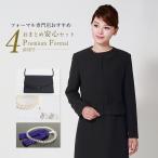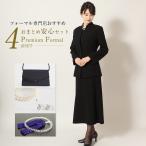喪服 プレミアムフォーマルセット/ブラックフォーマル+フォーマルバッグ+女性用片手念珠+パールの豪華4点セット(喪服 礼服 レディース 直売 法事 ミセス アンサンブル 40代 セット・バック)PF-1606[7号 9号 11号 13号 15号 17号 19号 21号]