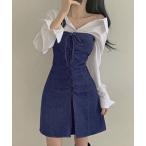 ワンピース ベアトップデニムミニワンピース