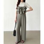 サロペット オーバーオール スラっと美シルエット。 フリルキャミサロペット ティアード ベアトップ フリルサロペット オールインワン レディース