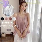 キャミソール シフォン トップス ノースリーブ 快適生地 可愛 淑女 フレア袖 フレア裾 ベアトップ 鎖骨見せ ゆったり フェミニン デイリーコーデ