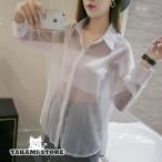 シースルー トップス シャツ ブラウス レディース シアーシャツ 透け感 肌見せ 女子会 デート 春 夏 秋 白 黒 ホワイト ブラック