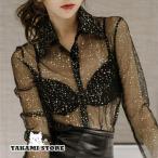 シースルー シャツ トップス ラメ 星 レディース 長袖 透け感 肌見せ お呼ばれ パーティー 大きいサイズ 春 夏