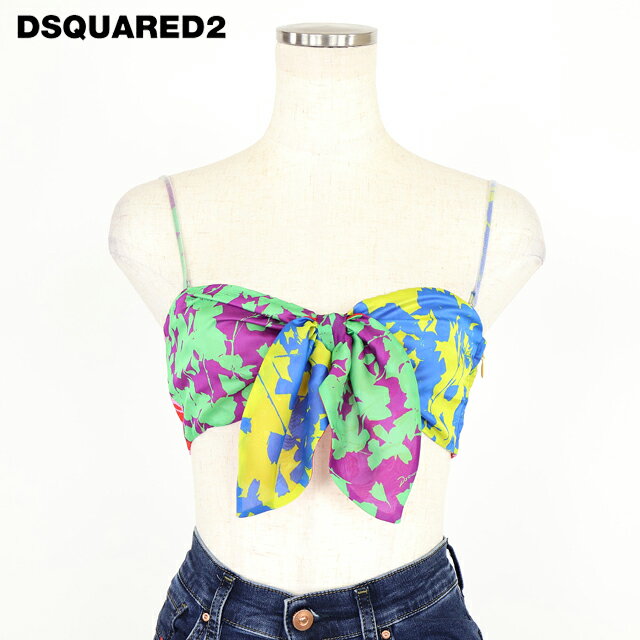 ディースクエアード(DSQUARED2)レディース ベアトップ・チューブトップ マルチカラー系 ボタニカル柄バンドゥトップ イタリア製 (サイズ/38)*ds0016