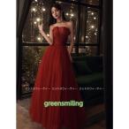 パーティードレス ロングドレス カラードレス 赤 レッド ビスチェドレス 結婚式 二次会 Aラインドレス パーティードレス ベアトップ 花嫁 披露宴 発表会 演奏会