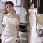 ウェディングドレス ウエディングドレス 二次会 結婚式 前撮り ブライダル ロングドレス 花嫁 マーメードドレス マーメイドラインドレス ベアトップ スリット
