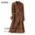 羊革 レザー コート レディース ベルト付き 本革 秋/冬 トレンチ アウター ブラウン S/M/L/2L l1b24
