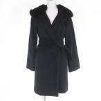 極美品☆Max Mara マックスマーラ キャメル100% ミンクファー・フード・ベルト付 ラップコート ブラック 34 伊製 正規品 レディース