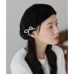 帽子 ベレー帽 パールリボンファーベレー帽 レディース