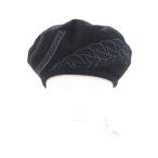 エルメス HERMES ベレー帽 カシミヤ グレー ブラック 刺繍 帽子