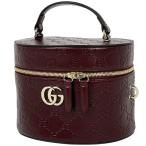 グッチ GUCCI グッチシマ バニティバッグ 2WAY ショルダーバッグ GGマーモント 化粧ポーチ シマレザー ボルドー 807324 レディース 中古
