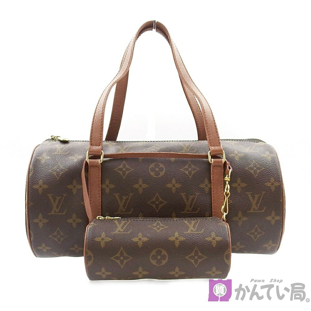 【ルイヴィトン】M51365 旧型パピヨン30 ハンドバッグ ポーチ 筒型 モノグラム ブラウン ゴールド金具 PVC レザー レディース ポーチ付き LOUIS VUITTON