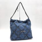 CHANEL シャネル シャネル22 スモールショルダーバッグ デニム×レザー ブルー×ゴールド金具 AS3260