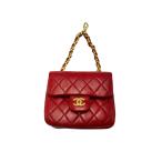 シャネル CHANEL ココマーク チェーン ポーチ マトラッセ ストラップ アクセサリーポーチ レザー レッド レディース 中古