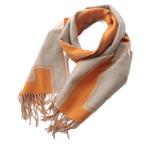 エルメス HERMES 25AW クレ・ドゥ・H プティットカスク カシミヤ マフラー フリンジ ベージュ・シネ × オレンジ /YO35 ■OH レディース