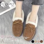 モカシン レディース 内ボア ファー ムートン ぺたんこ フラット シンプル 秋 冬 あったか もこもこ 履きやすい 裏起毛 蝶結び 婦人靴 快適