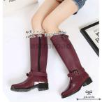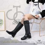 レインブーツ レインシューズ レディース ロングブーツ ロング エンジニア ファスナー バックジップ 長靴 ローヒール ベルト飾り 雨靴 軽量 防水