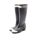 CHANEL シャネル レディース ラバー スリッポン レインシューズ Mules ダークネイビー ブルー ブラック サイズ:38 24A G45837 B17440 NZA92 美品 【中古】