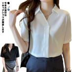 半袖シャツ 事務服 レディース シャツ カットソー 普段着 トップス 襟付き ワイシャツ Vネック シフォン ブラウス 通勤 半袖 就活 フォーマル