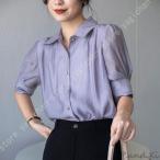 レディース シャツ 半袖 ブラウス カジュアル 折り襟 おしゃれ 着痩せ 春物 カットソー パフスリーブ フォーマル レディース 事務服 ユニフォーム おしゃれ