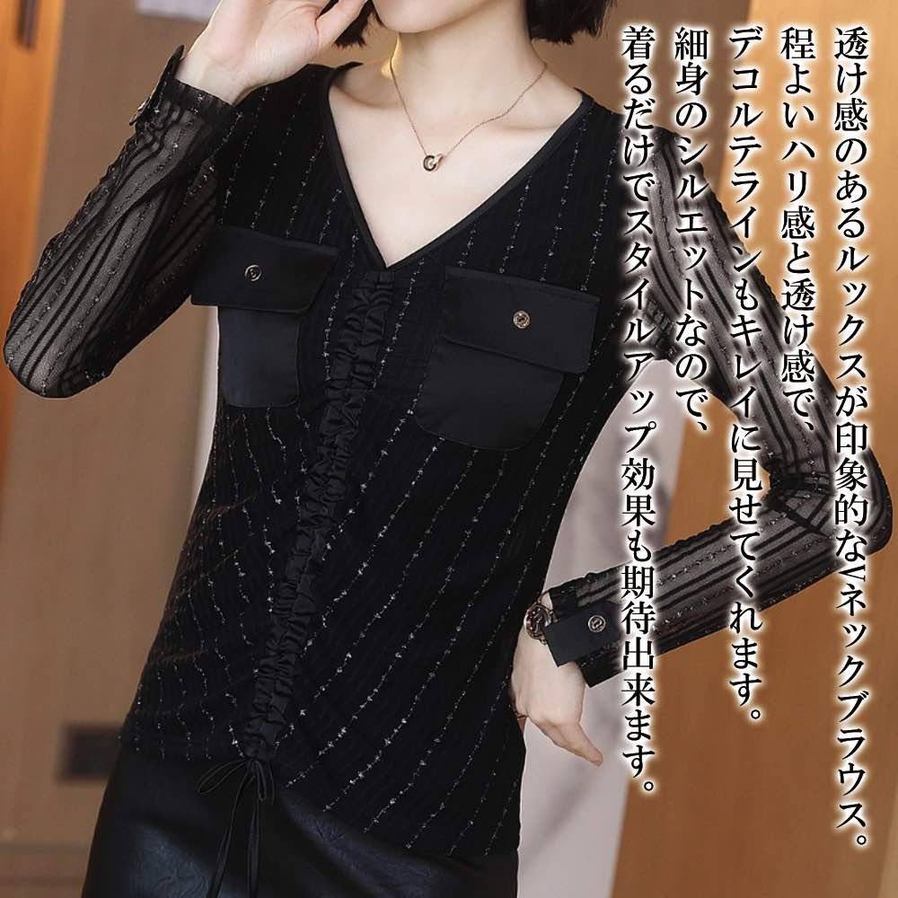 【\クーポン利用で20%OFF!/】 ブラウス レディース Vネックシアーブラウス 事務服 フリル 高品質 Tシャツ 春 スーツ ボウタイ ワンピース 人気 ノーアイロン 秋 きれいめ 白 オフィス 50代 冬 安い ブランド 長袖 シャツ カジュアル おしゃれ 厚手 レース