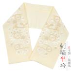 刺繍半衿 【白白 / 白銀】日本製 塩瀬 洗える 半襟 刺繍衿 礼装 振袖 成人式 結婚式 留袖 訪問着 レース 長襦袢 菊 桜 松 竹 梅 七宝 藤 衿 襟 交織 送料無料