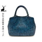 ハンドバック 印伝 本漆 藍色 天然鹿革 牛革 バッグ 本革 パールトン ハイグレード加工済 鹿革 革 レザー 和装 洋装 フォーマル カジュアル