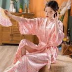 レディース 浴衣風 パジャマ ワンピース 和服 和装 ナイトガウン 花柄 シルク風 部屋着 女性 可愛い 部屋着 寝巻き コスプレ ルームウェア 春夏