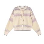 ニットカーディガン レディース フェアアイル柄 アウター ボタン前開き 丸首 セータージャケット オシャレ 柔らかい 長袖 ショート丈