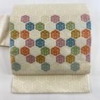 美品 袋名古屋帯 逸品 川島織物 落款あり 菱 幾何学 ベージュ 正絹 中古