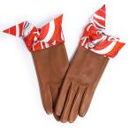 (美品)HERMES エルメス ファンタジア ツイリー Faubourg Rainbow フォーブル レインボー ラムスキン ブラウン レッド 手袋 グローブ #7 レザー シルク 箱付