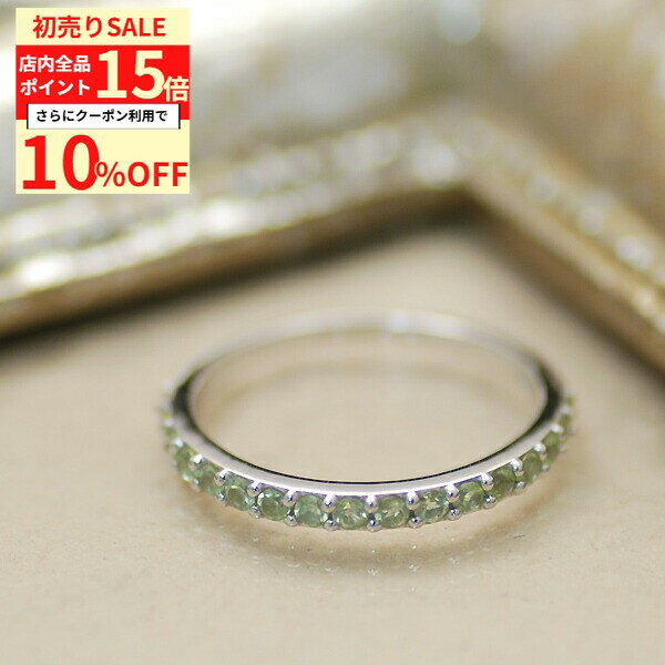 【10%OFFクーポン+全品ポイント15倍 1/3(土)23:59まで】ハーフエタニティリング 天然石 ペリドット 8月 誕生石 ストレートリング 7号 9号 11号 13号 ハーフ エタニティ シンプル 貴石 ラウンドブリリアントカット レディース sv925 スターリングシルバー 銀