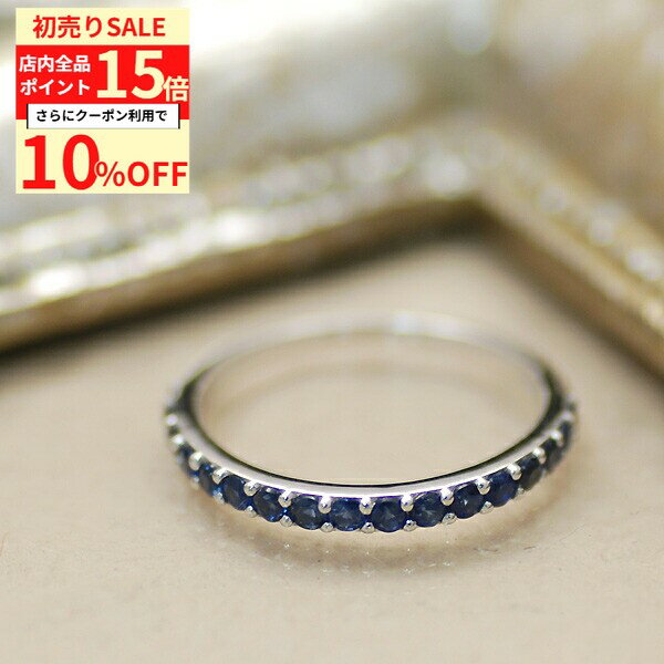 【10%OFFクーポン+全品ポイント15倍 1/3(土)23:59まで】ハーフエタニティリング 天然石 サファイア 9月 誕生石 ストレートリング 7号 9号 11号 13号 ハーフ エタニティ シンプル 貴石 ラウンドブリリアントカット レディース sv925 スターリングシルバー 銀