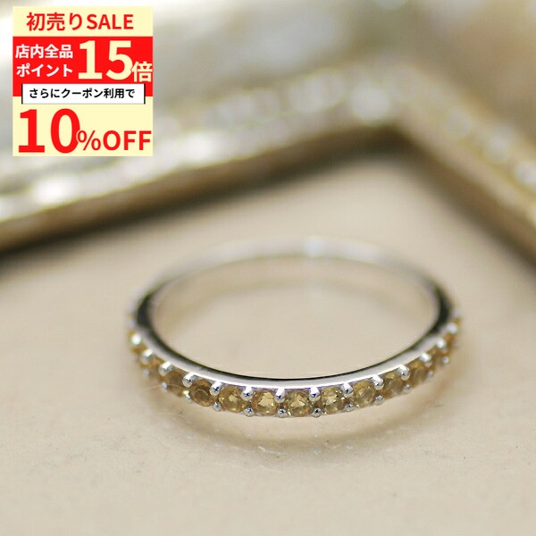 【10%OFFクーポン+全品ポイント15倍 1/3(土)23:59まで】ハーフエタニティリング 天然石 シトリン 11月 誕生石 ストレートリング 7号 9号 11号 13号 ハーフ エタニティ シンプル 貴石 ラウンドブリリアントカット レディース sv925 スターリングシルバー 銀