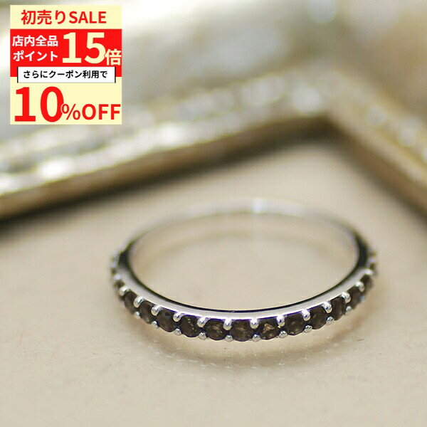 【10%OFFクーポン+全品ポイント15倍 1/3(土)23:59まで】ハーフエタニティリング 天然石 スモーキークオーツ ストレートリング 7号 9号 11号 13号 ハーフ エタニティ シンプル 貴石 ラウンドブリリアントカット レディース sv925 スターリングシルバー 銀