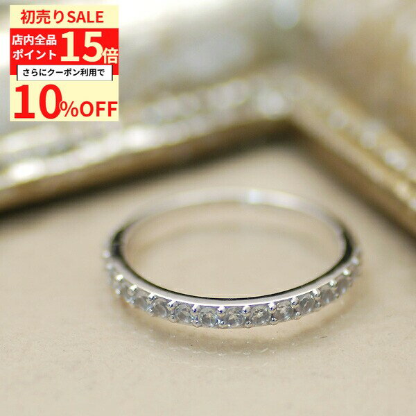 【10%OFFクーポン+全品ポイント15倍 1/3(土)23:59まで】ハーフエタニティリング 天然石 ホワイトトパーズ ストレートリング 7号 9号 11号 13号 ハーフ エタニティ シンプル 貴石 ラウンドブリリアントカット レディース sv925 スターリングシルバー 銀