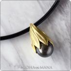 ハワイアンジュエリー ネックレス タヒチアンパール 黒蝶真珠 ペンダント ネヘネヘ K18 本革チョーカー付 18金 ゴールド ブラックパール