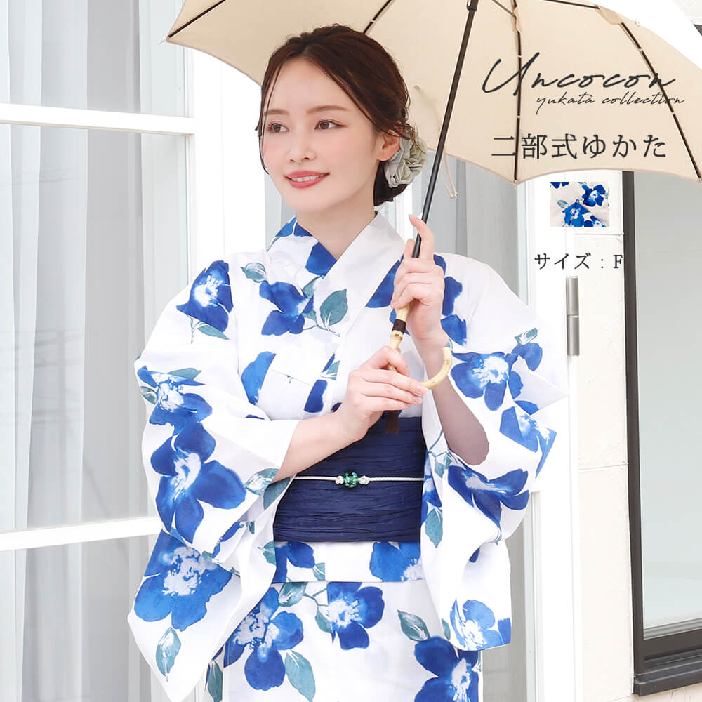 \ 4000円OFF☆ 7999円⇒ 3999円/ 浴衣 セパレート 二部式 女性浴衣 レディース浴衣 単品 浴衣単品 仕立て上がり レディース ブルー 簡単浴衣 女性浴衣 白