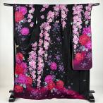 振袖 身丈172.5cm 裄丈72cm L 袷 薔薇 桜 銀通し ラインストーン 黒 正絹 美品 逸品 中古