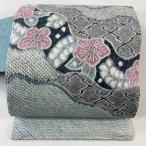 名古屋帯 美品 逸品 流水 絞り 灰色 正絹 中古