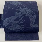 名古屋帯 逸品 落款あり 海老 波 藍色 正絹 中古